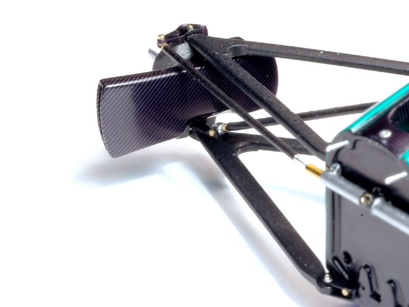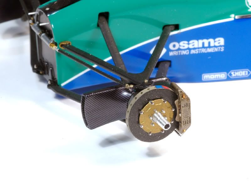 The brake callipers are painted Alclad Pale Gold. They didn’t come out as crisp as I had wished but I added some extra details do distract from that on top of the individual brake pads :-)