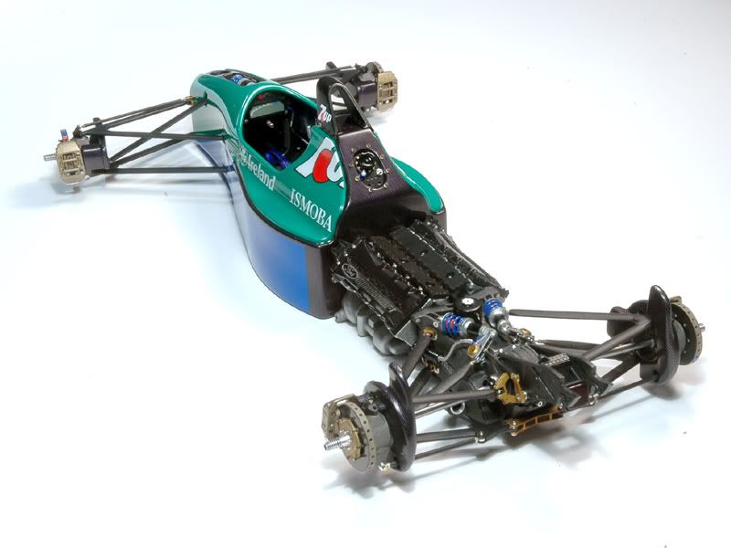 And finally a shot together with the rear part of the car. I also installed the brakes for the rear wheels obviously :-)
