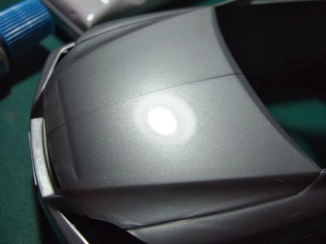 This time I'll try something new (or, back to my basic). To examine the painting and polishing scheme, I airbrushed GSI Creos (Gunze Sangyo) Super Clear (lacquer based paint), thinned with Retarder Mild (Super Clear 1: Retarder Mild 2). After drying for 3 days, I polished with #1500, #2000, #3000, #4000 sanding papers, then polished with Tamiya's Course Compound, Fine Compound, Finishing Compound. I am so happy with this smooth gross. Since I was using only GSI Creos's paint and was only happy with result (such as
