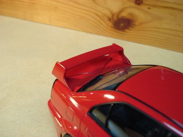 Paint: Mitsubishi P85 (Phoenix red) Modifications: Evo 5 body, interior/chassis from Evo 6, wheels and decals from Fujimi Evo 5 The work involved on this one is not as intense as my Evo 4 and TME, since it is basically turning a WRC car into street. The exhaust tip was turned aluminum tube. Windows are from my old Tamiya Evo 6 repolished and covered with future floor wax.(by this point the old Evo 6 has nothing but the basic chassis left and the body poorly painted with testors metallic blue, will post pics if requested....RIP heroic old 6) Other mods include the street stock hood duct and some detailing parts. Fujimi wheels were converted into the pin style wheels. ![]() ![]() ![]() ![]() ![]() ![]() ![]() ![]() ![]() ![]()