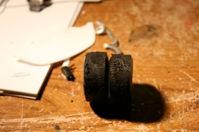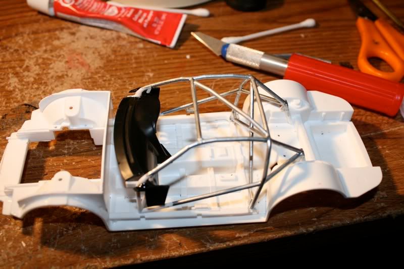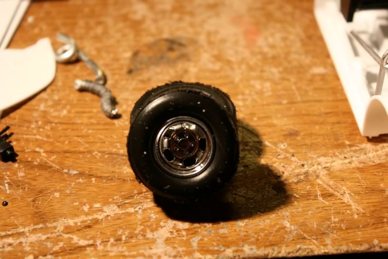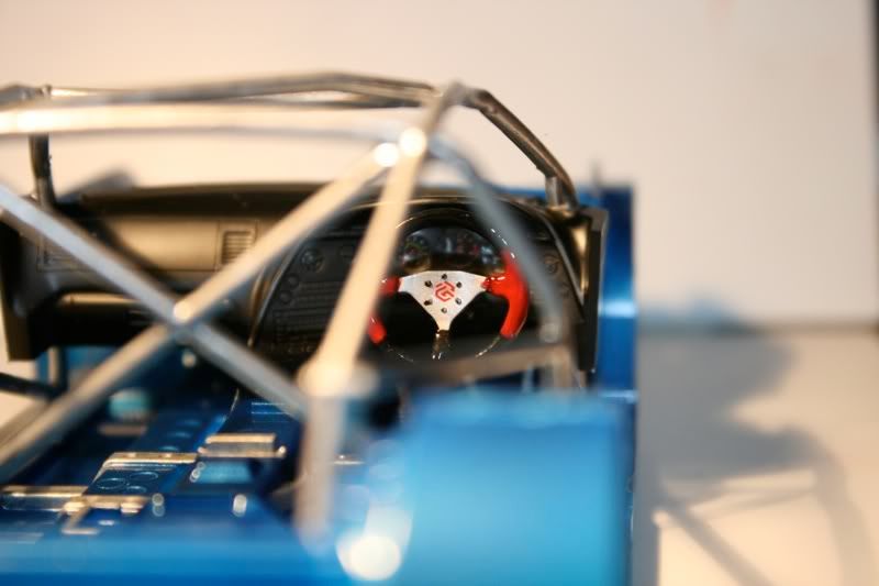 well like i said once the chassis started coming together the progress would move along VERY fast. as you can see the rear and 95% of the interior of the car is done, and the wheels are test fitted, looks like a PErFEcT fit. but i had to remove the big sard racing brake rotor and caliper to fit these tires, now i have a big brake kit for the next project