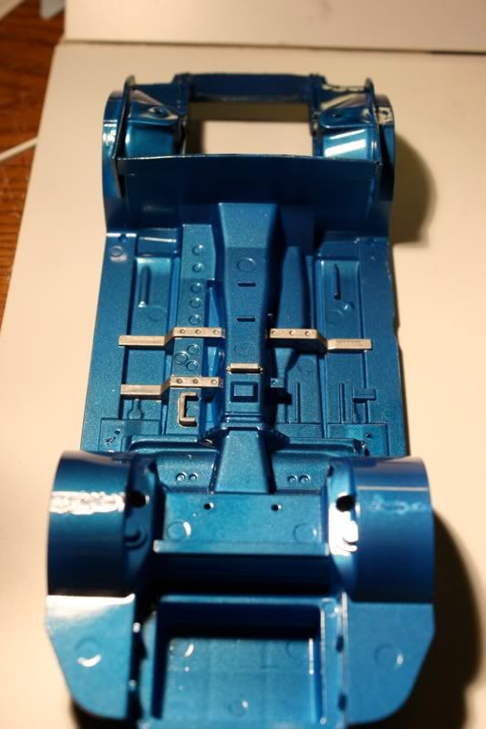 the color is a blue metallic paint. cant really tell on the body b/c i took the picture at night in the garage. its still drying, then i have some buffing to do, another coat of blue, then clear. but the chassis should be good to go, i will start assembly/engine work on the chassis pretty soon. seems like i have nothing done, but its just a bunch of little pieces being worked on separately but when the car starts coming together hopefully it will be quick... anyways, here you go: ![]() ![]() ![]() ![]() ![]() ![]() |