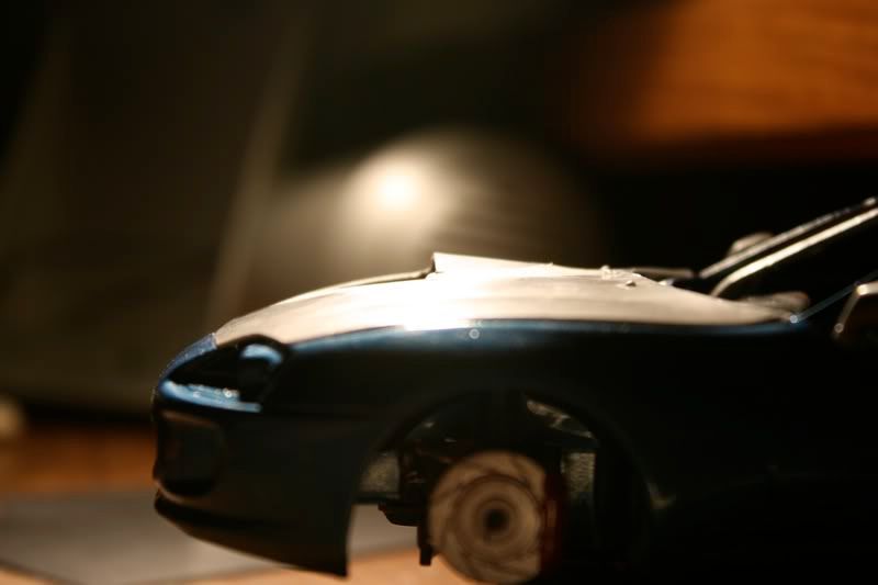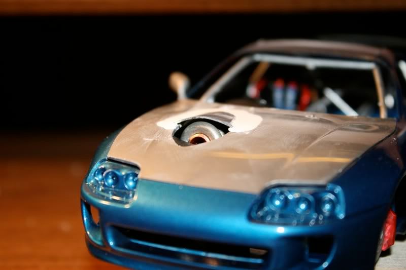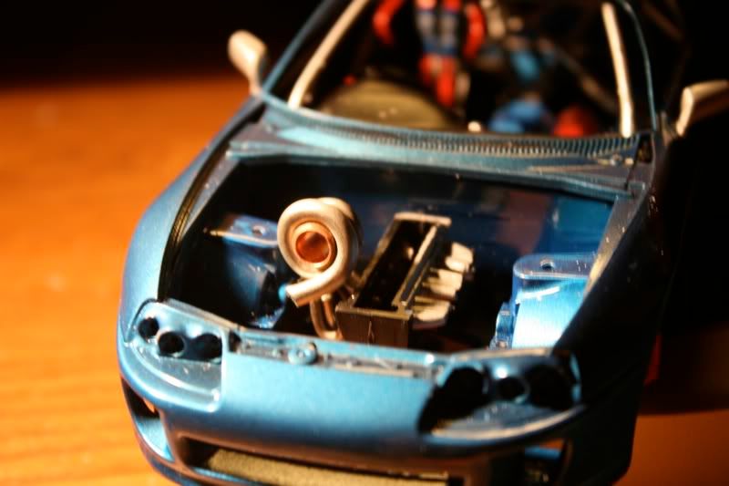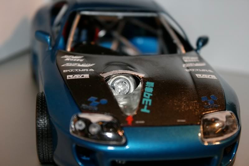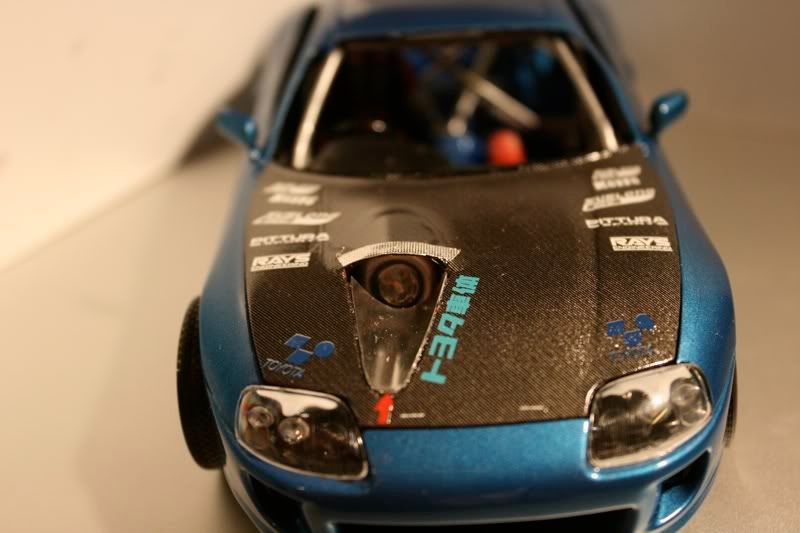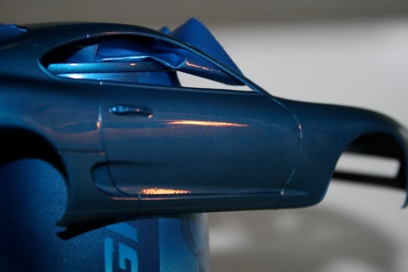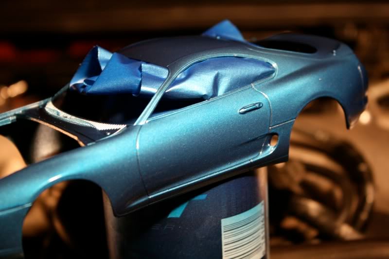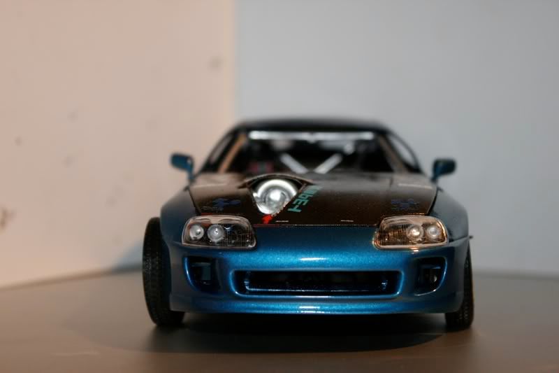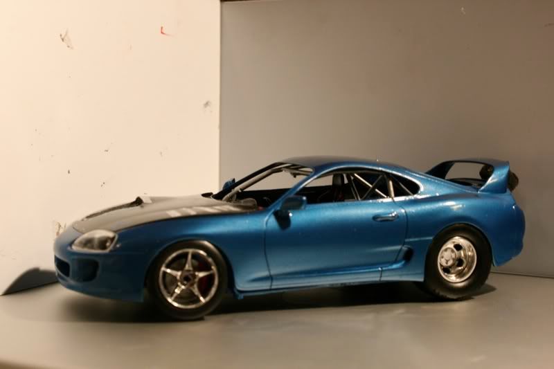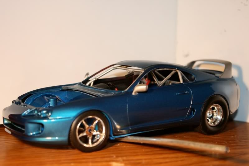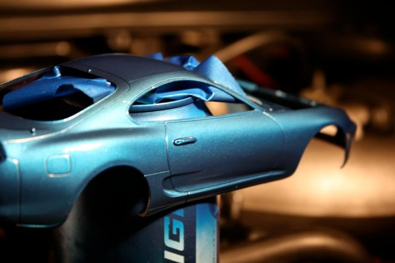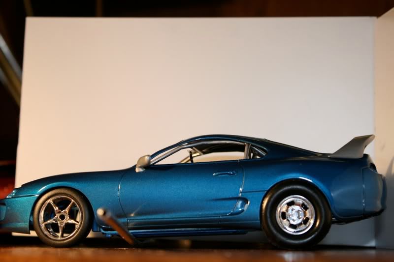 thanks man! my paint jobs are getting a bit better with every model. this one i actually took more time to sand and then put a layer of primer before spraying the blue metallic paint. there are still areas of imperfection wehre little bugs sat on teh car,2 spots you cant really see, this happened b/c i dont really have a "box" to paint the car in and had to do it away from the 2 real supras in the garage. but those spots will cover up when i spray the hood, mirrors, and spoiler. the car looks almost finished but now i got to the most detailed portion of the build.... and my favorite as well