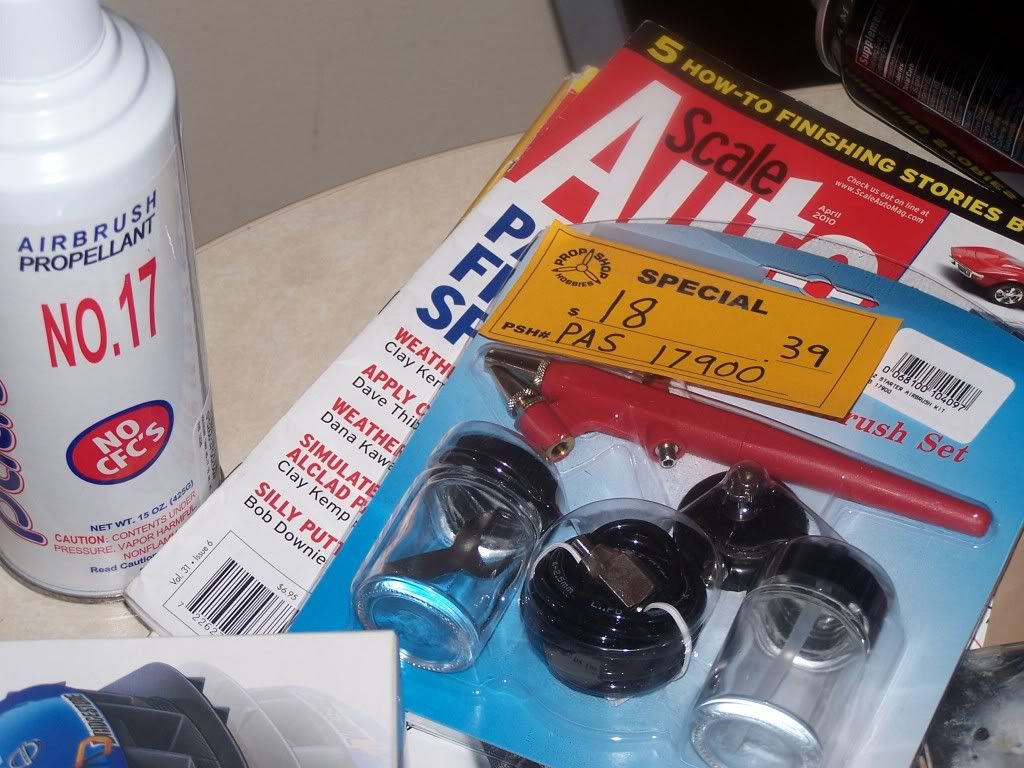 Just watch if your using a blue Testors Propellant can not to put the air on too high. The air comes out liquidy and spray's really thick. I had that happen and it scared the living daylights out of me. It has been half a year since that and haven't been airbrushing since. But don't let me scare you off. Airbrushing is just cool when you see the finish you get. Another reason why I haven't been using it is because it is so cold, it even takes the tamiya acrillyc a day to dry!