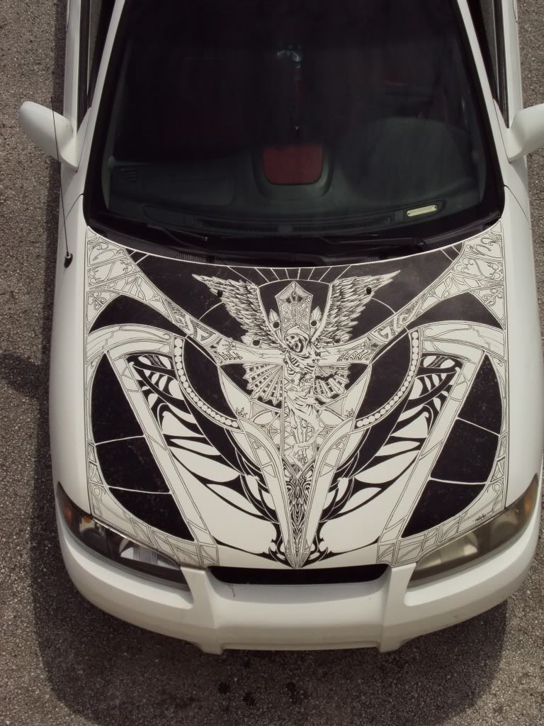 On the hood drawing, do you rough out a thumbnail design first or just let it flow? And welcome to the art forum. |