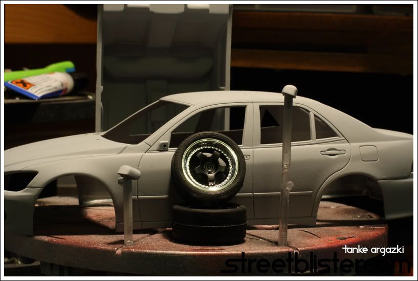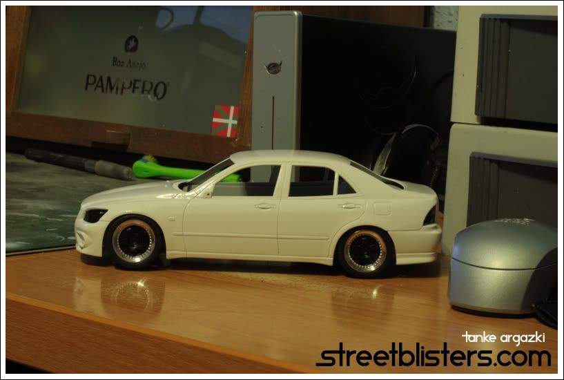 I like the Altezza's original wheels myself but the first set looks good on it too