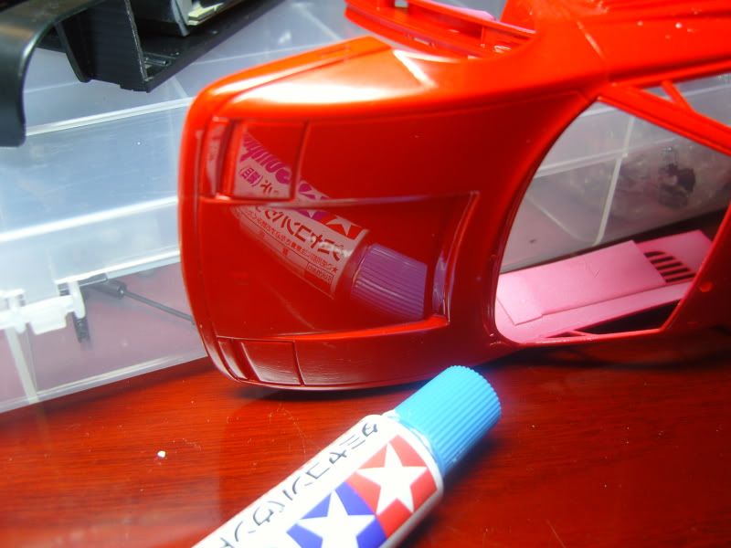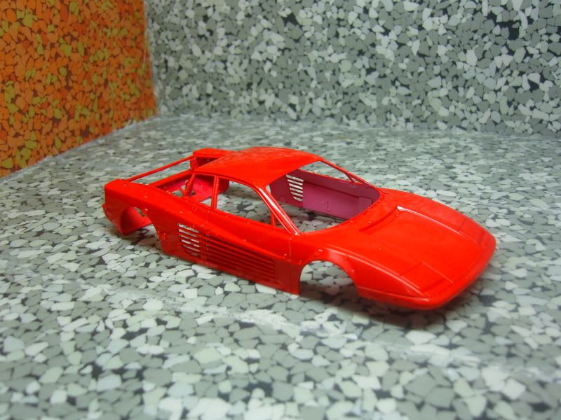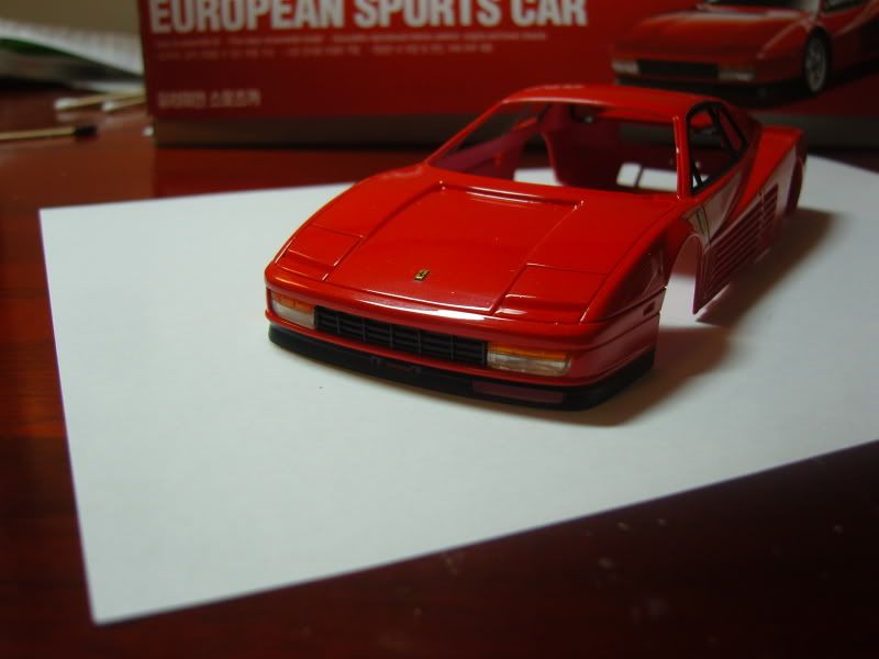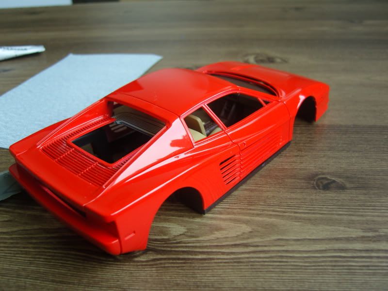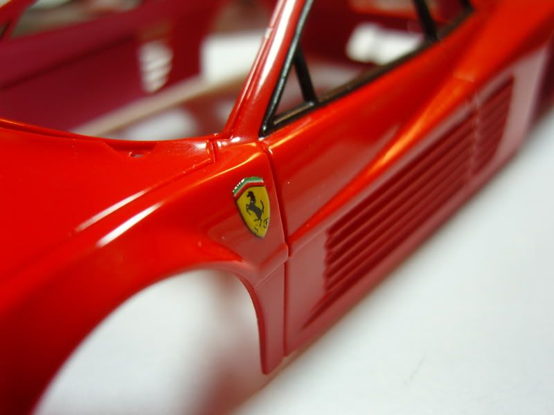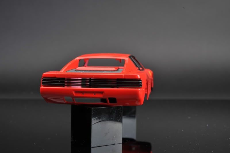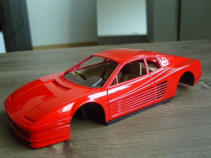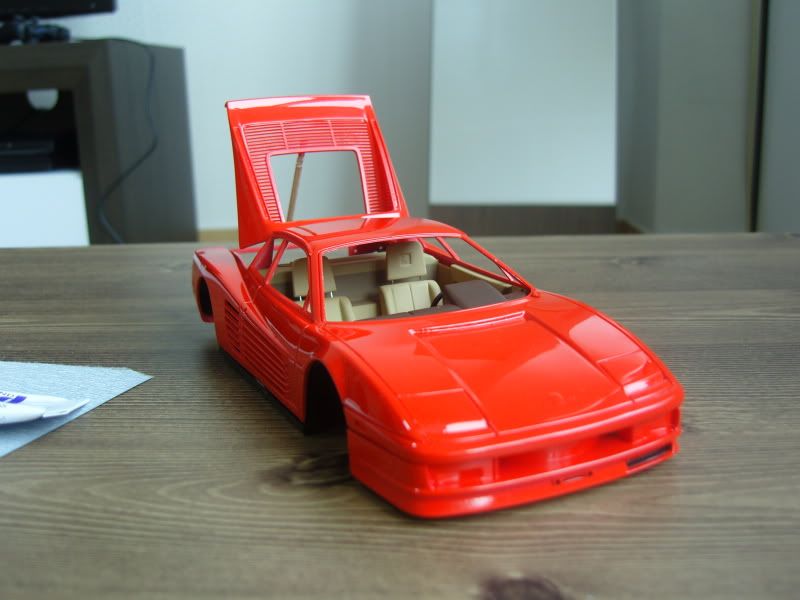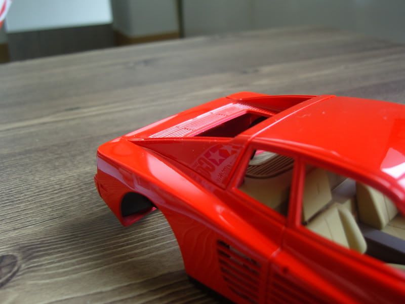 I've got some major disasters (of course ) to report but also some minor successes. Well, last night after taking the mask off after painting black trim around side windows I spotted a paint chip Easy to fix I thought and this morning I masked it and spray some red. Unfortunatelly I forgot to take masking tape before I put it to the dehydrator... It ruined the paintjob so badly that I thought it was beyond repair but I didn't give up and started polishing (AGAIN!!!!!!!!). It's not perfect but acceptable I guess. Also I hadn't been planing on using Ferrari badges on the sides but I was forced at the end to hide some of the marks of the mess-up. It looks OK now as I got used to it![]() On the positive side masking on the engine cover turned out PERFECT!!!!! By far my best masking job ever ![]() Also, while I completely destroyed Italeri's real grill while attempting to open it (the black plastic in the kit seems to be soft and weird, feels like it's melting in your hands) I cut the tamiya one from its one piece body and I was shocked to see that not only does it look awesome but also fits like a glove (on the pic it's only dryfitted though) ![]() I almost finished from bumper. The only thing left to be add is a litle metal transfer to make this rather ugly front grill (and tami one didn't fit) a bit more interesting ![]() And it's starting to look like a Testarossa ![]() ![]() We're getting there, slowly but surely |