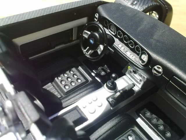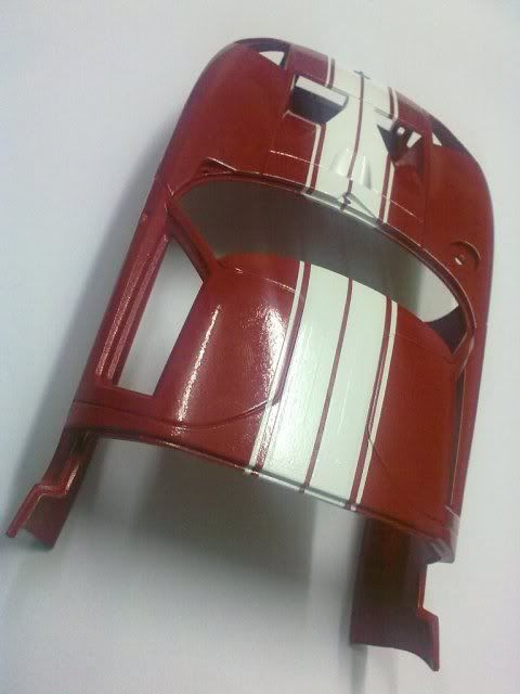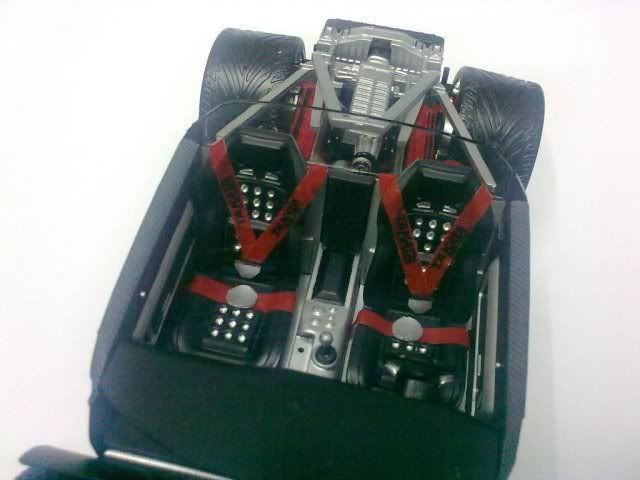 They gave me waterslide stripes but I am not quite satisfied with it.So I masked and sprayed.except for the side stripes which have the wordings 'Ford GT'.And I also added some other water slide decals by myself. ![]() ![]() ![]() ![]() And for the interior,I added 4-point seatbelts by using masking tape sprayed in red and 'silver parts'. ![]() ![]() ![]() Thats all.Wait for completely dried and will spray clear coat on it. |