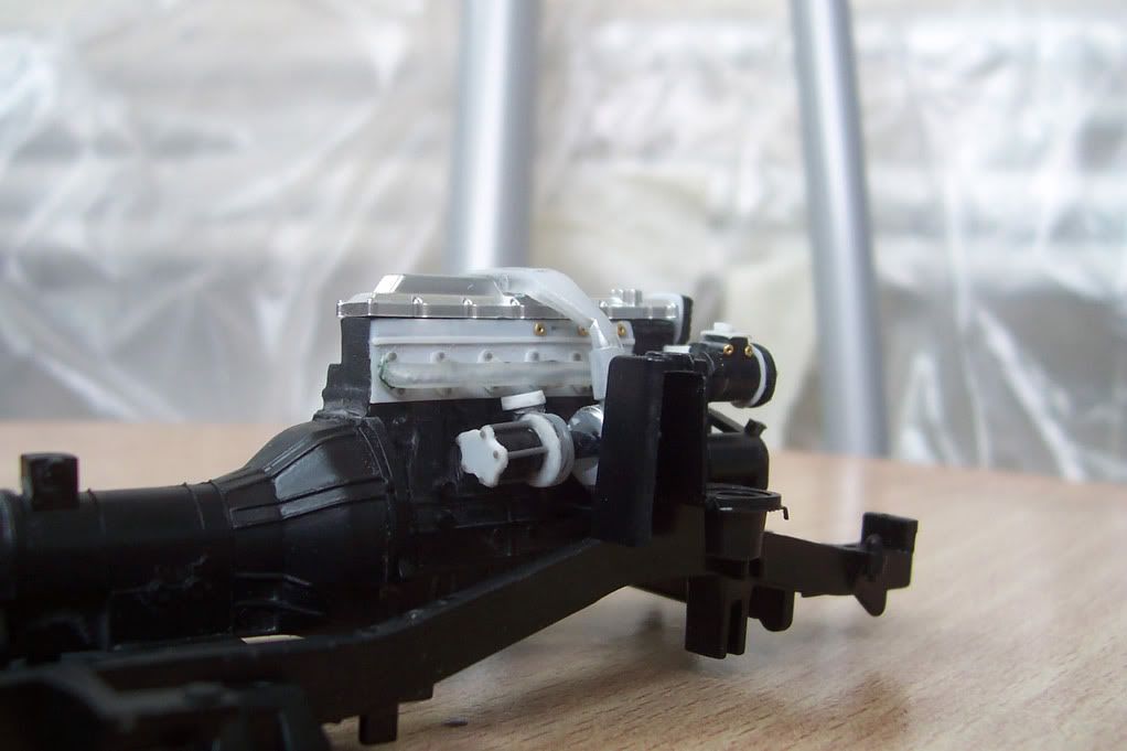 Looking good! I built this kit not long ago and the masking sure was about to make me go insane. Awesome job on the engine too although I believe the radiator hose should go into the engine behind the power steering reservoir.