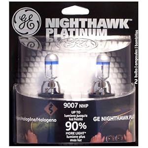Amazon.com Product Description General Electric's Nighthawk Platinum series of replacement halogen headlamps are the ultimate solution to the danger of poor lighting conditions on the road. Easily installed by auto professionals and do-it-yourselfers alike, this 2-pack of bulbs is suitable for a wide variety of vehicle models and is capable of providing up to 90% more light than standard headlights, making it a must have for any driver experiencing dimming headlights, or simply interested in minimizing the chance of an accident due to poor visibility. Drive with Confidence Despite the fact that traffic levels generally drop at night, the fact remains that year after year nearly half of the total accidents that occur on U.S. roads and highways take place at night. Wherever these nighttime accidents occur, one factor is always the possibility of compromised and even poor road lighting conditions. This is why every motorist should consider GE's Nighthawk Platinum series of auto halogen replacement bulbs. Up to 90% More Light* GE's Nighthawk Platinum headlamps produce clean white light resulting in up to 90% more light on the road than standard halogen headlamps. Department of Transportation compliant, Nighthawk Platinum bulbs are available in a variety of sizes making them usable on many different models of vehicles, ensuring motorists of maximum light on the road and confidence, regardless of driving conditions.