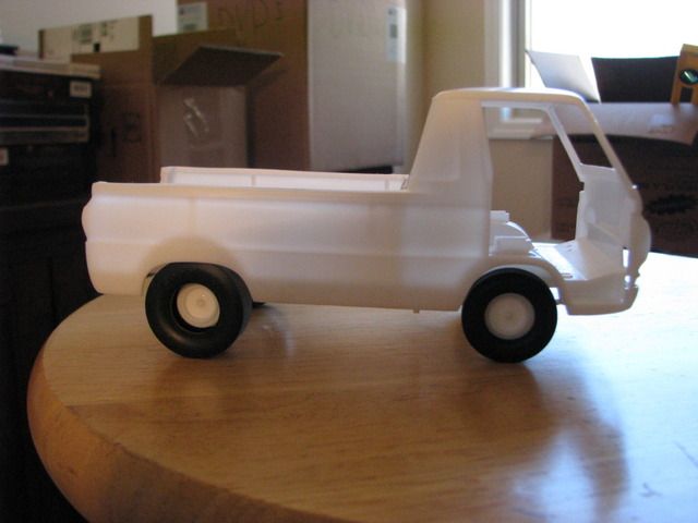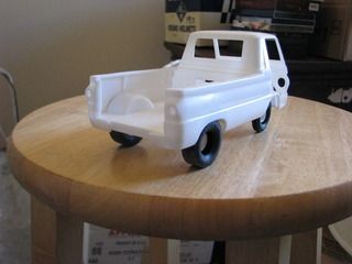 I haven't been able to do anything modeling wise for over a year, but now that we're finally in our new house I can dust off the table and get to work! This just happened to be next on the list to do. Plans are oob save for some suspension tweaks and a plumbed engine, my first time trying so it should be interesting. After reading a little I found that the rear axle was not sprung by anything so the rear leafs are out, and I did not include the front suspension risers out of artistic liberty. Almost all the parts are completely awful in terms of casting imperfections and overall cleanliness so it is taking time to go over everything. The body here has everything mostly cleaned and sanded.