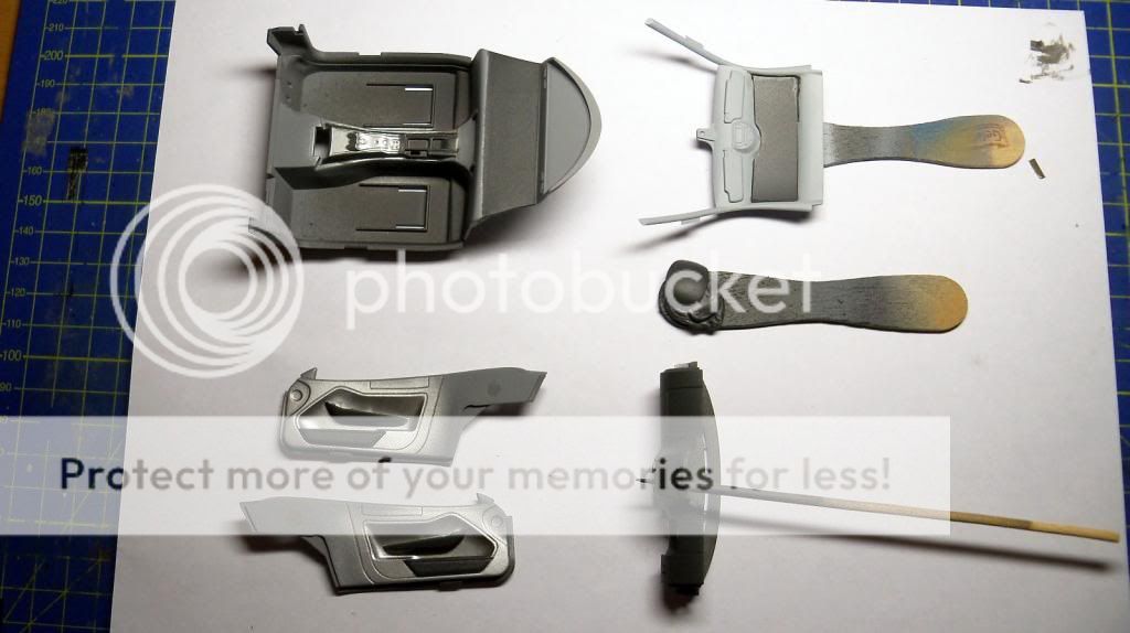 Here the next update with some interior preparations. Ι open the doors cases and I put the mesh for sound system. ![]() ![]() I choose a more sport look for my GTO (I 'll try a retro-sport mix look) so I decide to put the four point seat belts. So I opened four seat bely connectors an I put an oval frame on it (cut from pe set belts). ![]() ![]() From plastic rods, I made a roll bar. ![]() In the central console, I scribing the upper part to separate it, from the tunnel. ![]() For next, I opened the air vents to put the HD's pe vents. ![]() ![]() In a temporary assembly, I discover that the holes in the top off the dashboard, is not totally covered, so I put some putty on them. ![]() ![]() The final step for today is the steering column. ![]() ![]() Hope you like my job and thanks for your time. I wait your comments. Best regards George Last edited by gtziaf; 02-14-2013 at 10:49 AM. |