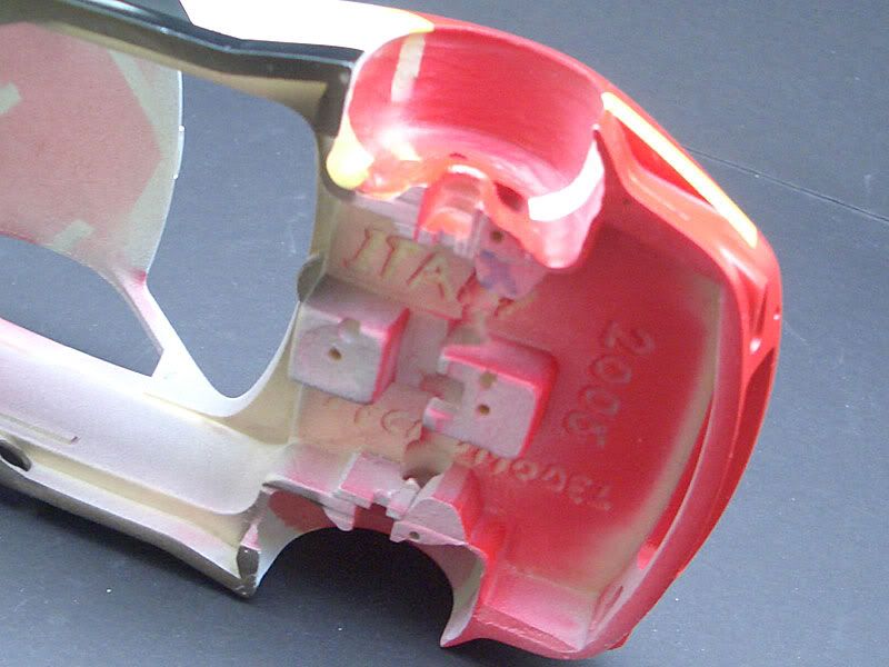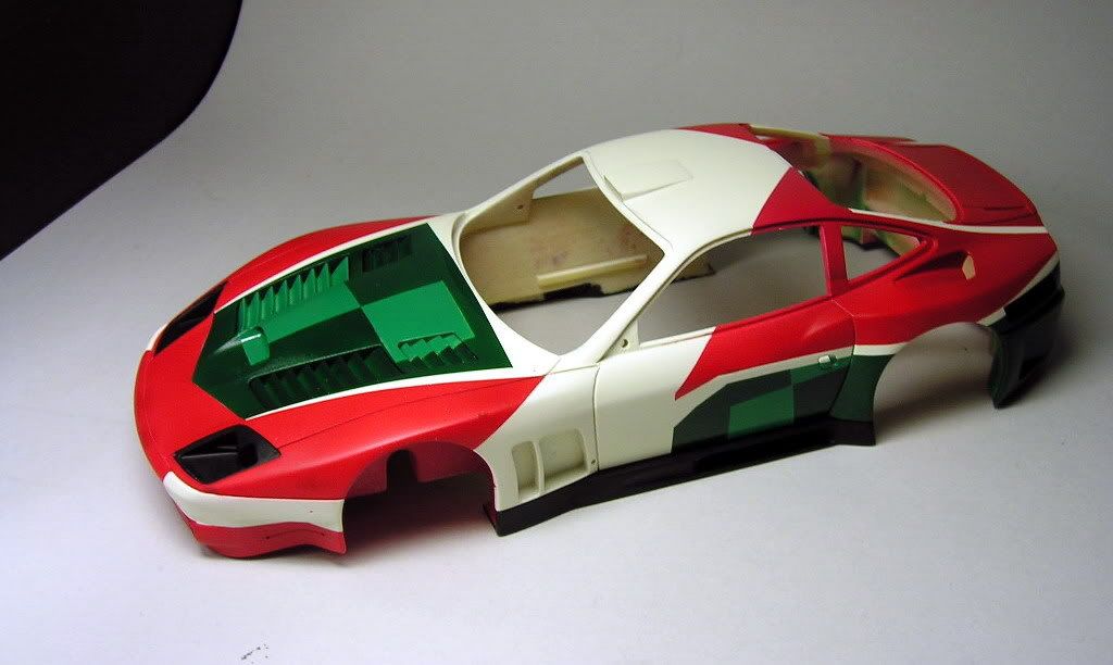 I sand down the whole body with sand paper 1000 grit. Then I spay an heavy coat of Tamiya white primer to check for body minor foults (a couple of bubble, nothing else). I smooth the primer with 1500 sand paper under current water and I rescribe the panel lines with an exacto blade. So I am ready to spray the body with Zero racing White. ![]() ![]() ![]() ![]() I start masking the white areas to spray Rosso Corsa 322 from Zero ![]() ![]() ![]() ![]() ![]() Here the body after three mist coats. ![]() ![]() |