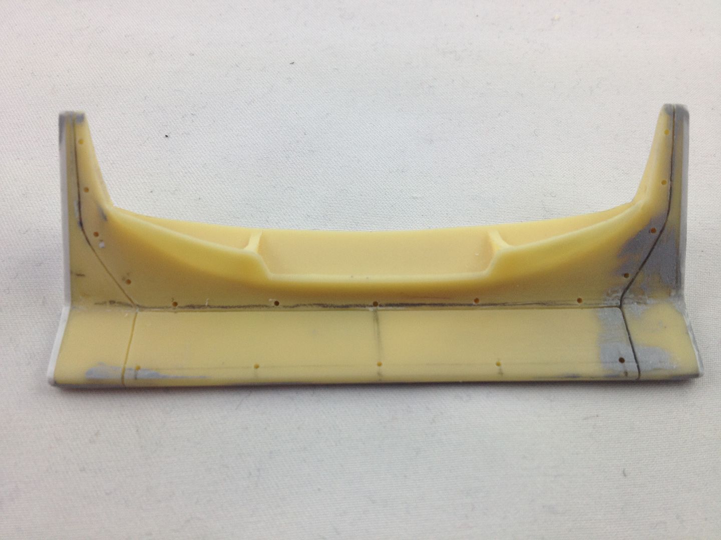 I start correct the front wing which is narrow and doesn't have the panel lines that divide the carbon fiber zone from the paint one.