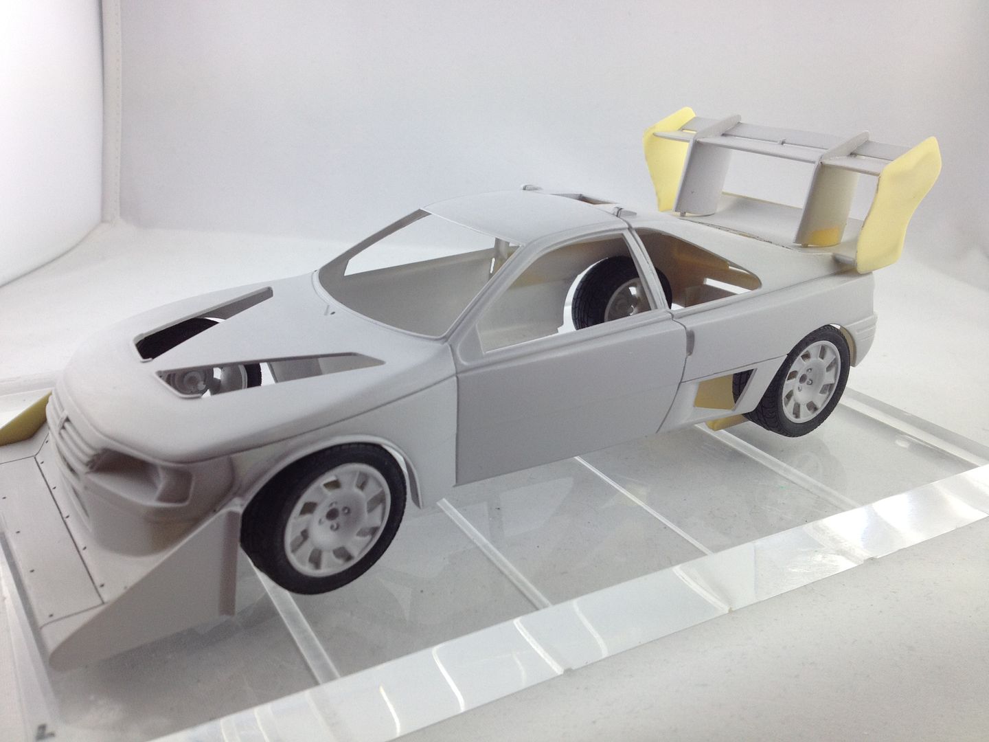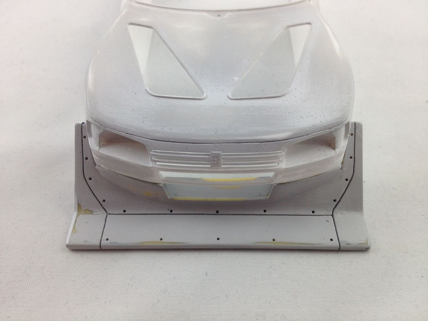 I drill the rims and replace the center with a new one taken from the spare parts box (I can't remeber what rims is). Then i realize a small mold to replicate the rims. ![]() I glued the rear hood provided with the transkit to the body and added a small plastic lip to the front fenders. Then a coat of primer to see the body complete. This is the result ![]() ![]() |