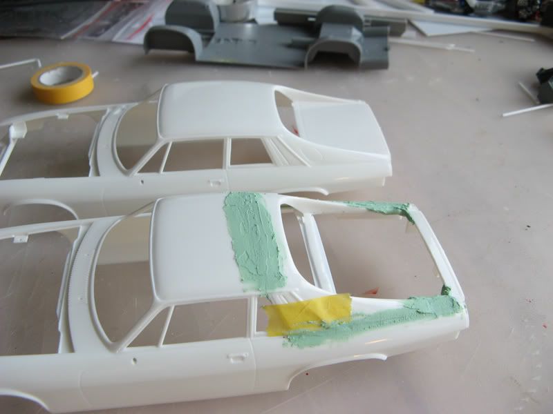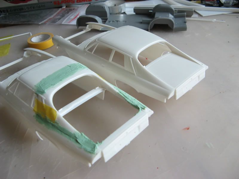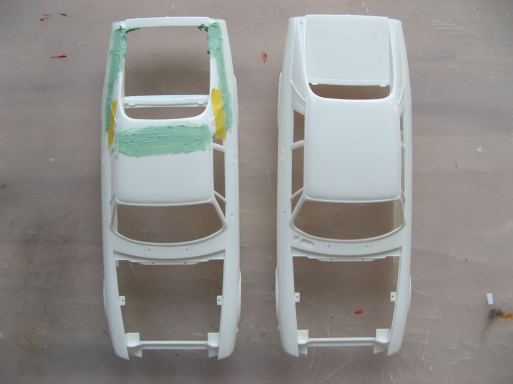 ![]() Base kit is the Jaguar XJS TWR sports from Hasegawa. I never liked the ugly plastic bumpers TWR put on this otherwise beautiful car. I thought about making it a phantom racer with big fender flares and heavily modded bodykit....but then I found a better solution. I am converting it to a UTE (utility vehicle = pickup). It will pull a trailer loaded with a Jaguar XJS H.E. TWR in full race trim. I started with outlining the cutting lines: ![]() ![]() After sawing and moving the rear roof section forward it looks like this: ![]() ![]() ![]() ![]() ![]() ![]() ![]() Now I have to shape it. Don't expect updates before next weekend C&C as always welcome. Cheers Sebastian |