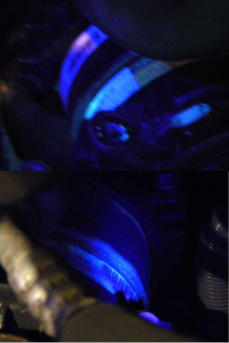 ![]() The second photo is so bad it wasn't even necessary to use a UV lamp to find the dye leaking.