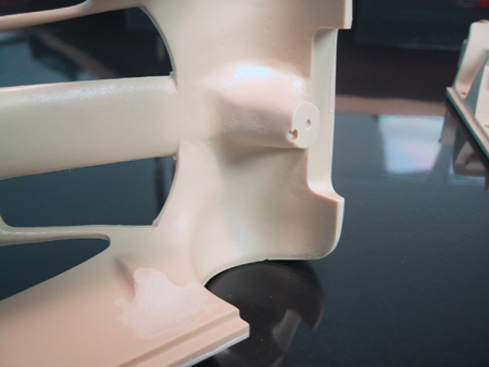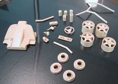 The body is designed to be held to the chassis by screws so it has thick attachment blocks made into the body blocking grills and vents which should be open. I will grind these off to open the holes and put screen in where necessary. Most of the parts, there is also a photoetch sheet and vacuumed formed windows. This is the road car that needs little introducton, I have the correct Papaya Orange paint provided by MCW.