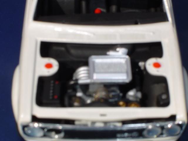 First post on AF. Just completed Revell 510, painted Tamiya Pearl White, 16" Aoshima SSR Formula Mesh, deleted bumpers. Single turbo 13B from Fujimi FC Cabrio, molded in the FC hood scoop to function with Intercooler. FC exhaust. Minor interior mods, fully flocked interior deleted rear seat and old Revell NSX seats. I don't like the windows that came with the kit, I don't know what i'm going to do about that, other than no windows totally finished.