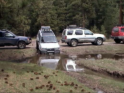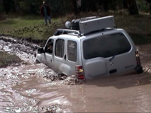 Hey this doesn't look too bad. Dive! Dive! ![]() Get out of the way. Here he comes. Yes those are 32" Super Swamper TSL's and they look like racing slicks. That's as far as she's going cap'n. Time to back it up.... Hey what's that gurgling sound? ![]() Where's the fish? Well it appears the water came in through the rear vent flap (behind the back bumper). The water wasn't noticeable until the truck was parked at an angle. Then it all moved forward into the drivers feet. I'll be posting video as soon as I get done digitizing it. |