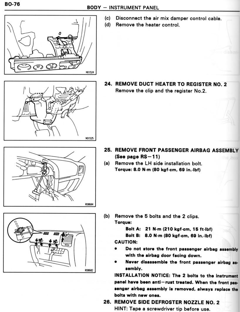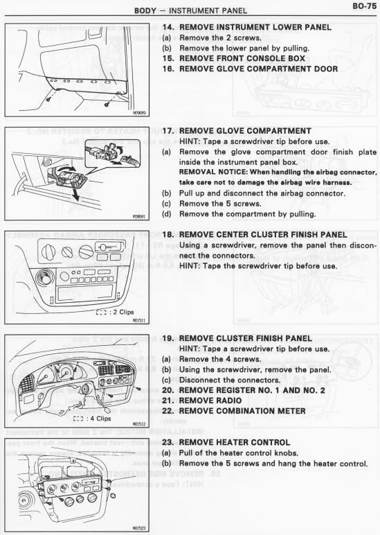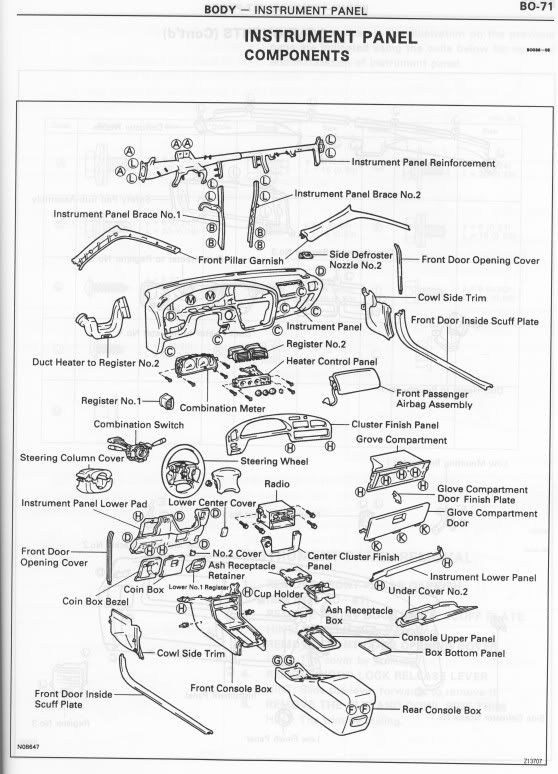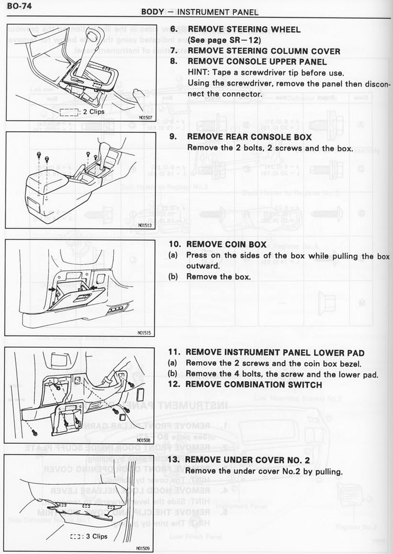 I'm trying to test a Shift Lock Solenoid thats located under the front part of the center console. I have a Haynes repair manual for my 1996 Camry LE and it says to renove the rear part first, this was easily done. Then I removed the four screws(2 on each side)and tried to lift and pull out---it seems to be stuck on something right in the center above the ashtray---is there another screw?--I don't want to yank it out and snap the plastic-----please help!!! |