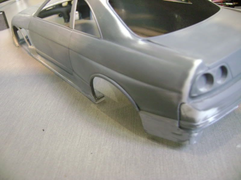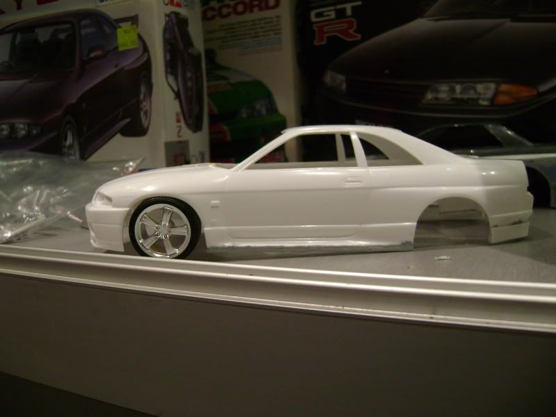Tamiyas R33 GTR with a few mods to the body kit. Wont be too over the top, Colour is going to be Candy Purple, I'm not trying to emulate Nissans beautiful Midnight Purple, I just really like the Candy Purple colour. Heres a few progress shots to show changes to the stock body. Next up is finishing the body mods & exhaust system. ![]() Most mods made with Styrene & putty to finish ![]() ![]() ![]() Vented the front quater panels ![]() The Front so far, still some work to do ![]() These are the wheels I will be using, had them left over from Nismo Z kit & thought the shape of the wheels would really suit a R33. then my imagination took over from there ![]() Chassis - fogged some candy purple on the sides to represent a respray ![]() Thats about it for now, Im still working on getting the body right & getting the stance low. Thanks for looking Ash