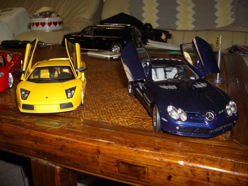 lambo and slr w/ doors up lambo is hotwheels whips slr is cmc http://i2.photobucket.com/albums/y7/...4/e870e9c5.jpg ferrari f430 by hotwheels and cl500 lorinser by autoart http://i2.photobucket.com/albums/y7/...4/551573c2.jpg maybach 62 and 57 w/ lowenharts both by autoart http://i2.photobucket.com/albums/y7/...4/1ea2d3d4.jpg g500 autoart 300c jada smart roadster and forfour by kyosho http://i2.photobucket.com/albums/y7/...4/6cfe7973.jpg escalde ricko w/ ipod hookup and smoked rear lites. inside has 6 tvs http://i2.photobucket.com/albums/y7/...4/d9e0731d.jpg |