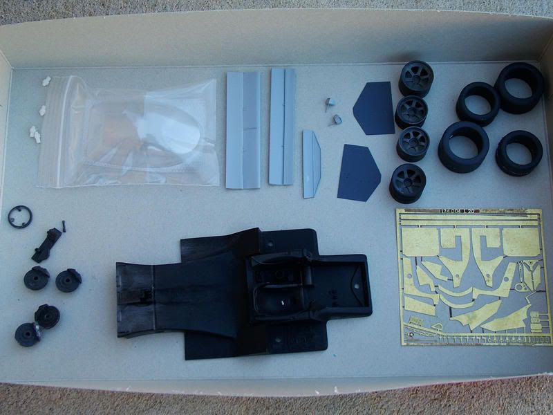 After a few weeks break here is my latest project. It's a 1/24th scale Le Mans Miniatures Jaguar XJR-14. The curbside, late season version, LMM also make a full detail kit. As you can see in the second picture it is a very simple kit, not a lot of parts. But being resin quite a lot of prep work is required. My old web site is dead, so I'm now using photobucket.