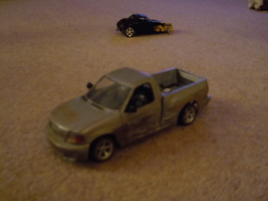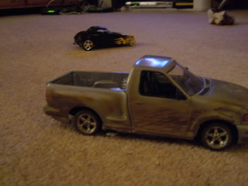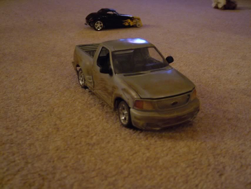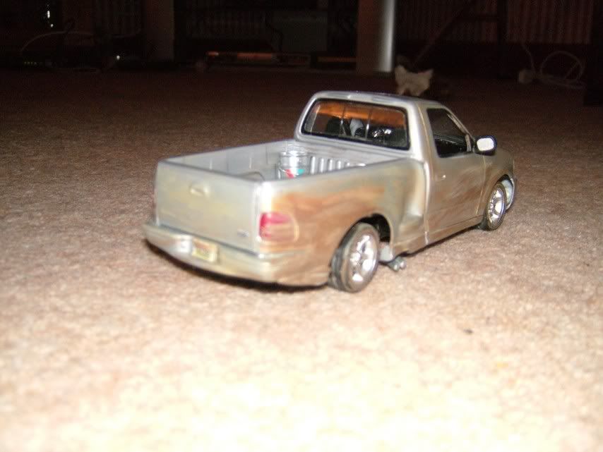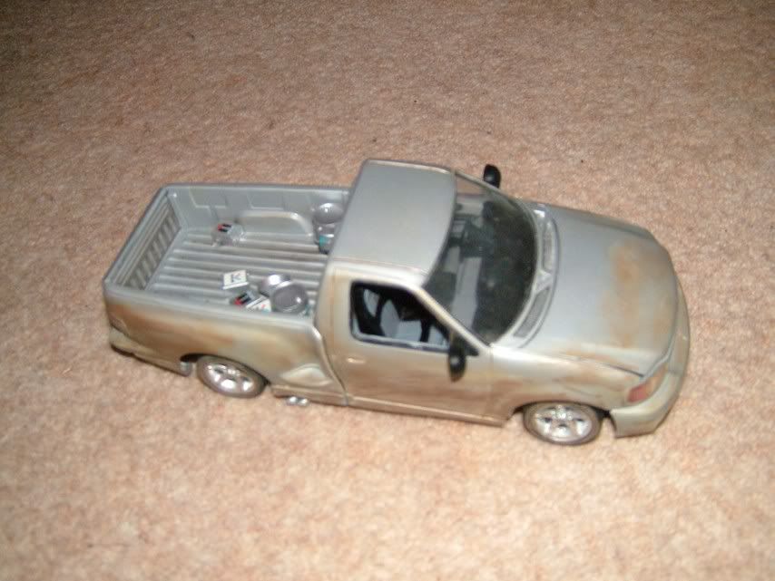 looks like he went for a whole mud bog adventure! nicely done. the mud looks pretty good, but mabye you should add just a bit more color to give it shades of brown etc. just my opinion. i also had that cab problem, where it was hard to find a spot to glue it on. i ended competely shaving eveything off my truck including the emblem in the grille.