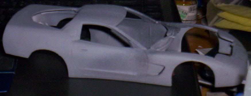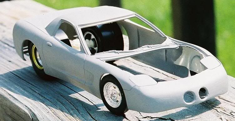 this kit started out as a 2004 revell z06 special edition. (dont worry, i've got another z06 i picked up on e-bay for .99 lol) after mocking up the rear drive line, i noticed that the rear-end/top fuel tire combo was WAY too narrow. Well my reference disk hadn't arrived yet so i contacted chris at TEM ([email protected]) give him a shout he's a great guy. and he gave some advice on the body work. This led me to my most extensive body mods to date. step number one was to narrow the body 8 scale inches (about 5/16ths) this is where i am at so far. The rear deck needs to be moved upward so that it will have plenty of room for those massive rear meats. nose in the weeds tail in the air, right chris? lol. i've got the turbo inlets cut in the front fascia. that gave me fits when narrowing the body, i had to take approx 2.5/16ths out on each side of those inlets. talk about fun........ i will probably add a lip or chin spoiler to the front of hte car to bring the nose down some, as well as some ground effects to the side of the car to lower it as well, got to make it look wicked fast. finally will be the rear wing. pro mod hugeness!!!Engine plans. as mentioned before this will be a twin turbo car . I love twin turbos. I've got a blower car. i need a twin turbo and an NOS car. when i finally get the TEM 68 camaro it will be my nitrous car. as soon as their 3 stage nitrous engine kit comes out....can't wait for that one!!!! there will be tons of scratchbuilding on this one. the intake will have to be custom, all of the piping, and plumbing.chassis/interior. the chassis will be one of my brass rod creations (hobby lobby here we come!!) the interior tub will be built out of styrene sheet just like the one on my mustang. i will make sure that the chassis resembles the dual rail style as much as possible. that is it so far. i've got another long painful build ahead of me. i have learned a lot with my mustang....dont paint anything until you have it ALL finished and ready for final assembly. lol ![]() ![]() ![]()