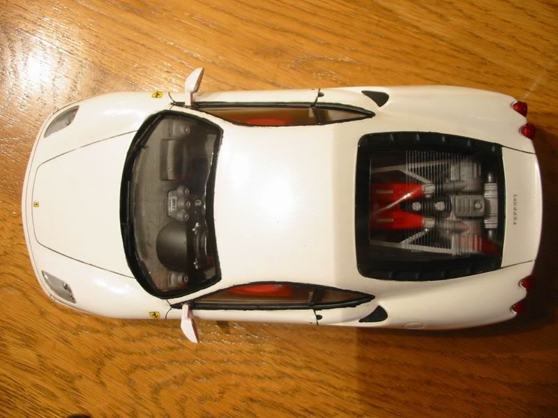 Color is Tamiya White Pearl with Clear Pearl. Interior Humbrol Satin black and flat red. Didn't took really long to build, every fits perfectly on this kit. This is the first Fujimi kit I've built that has a nice strance from the box. It's in facts so long that the wheels slighty rub on the fenders. My first attempt at propper panel lines, used thinned satin black, flaws were cleaned up after letting the thinner dry out for a day. I don't really like Ferrari's, but I've come to love this one. Comments welcomed ![]() ![]() ![]() ![]() ![]() Next project: Tamiya Honda S800