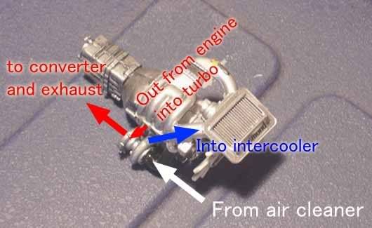 ![]() Hope this helps! Now You have connected the IC where the Downpipe (=exhaust pipe) should go i.e. You have attached the turbocharger wrong way. |
