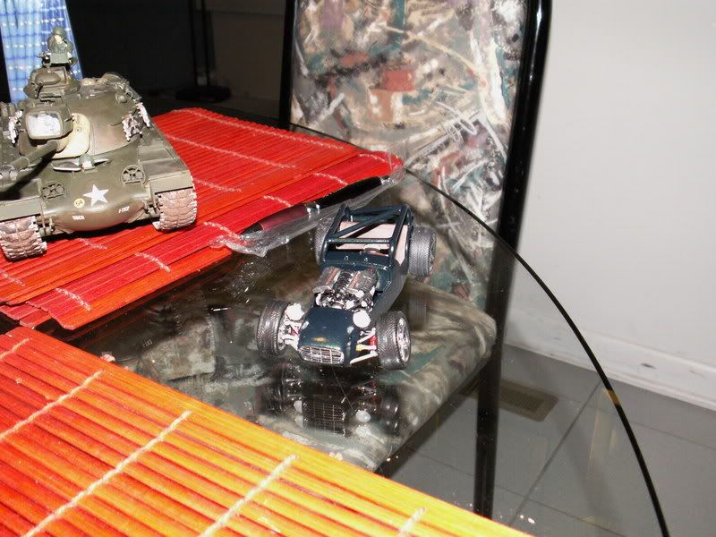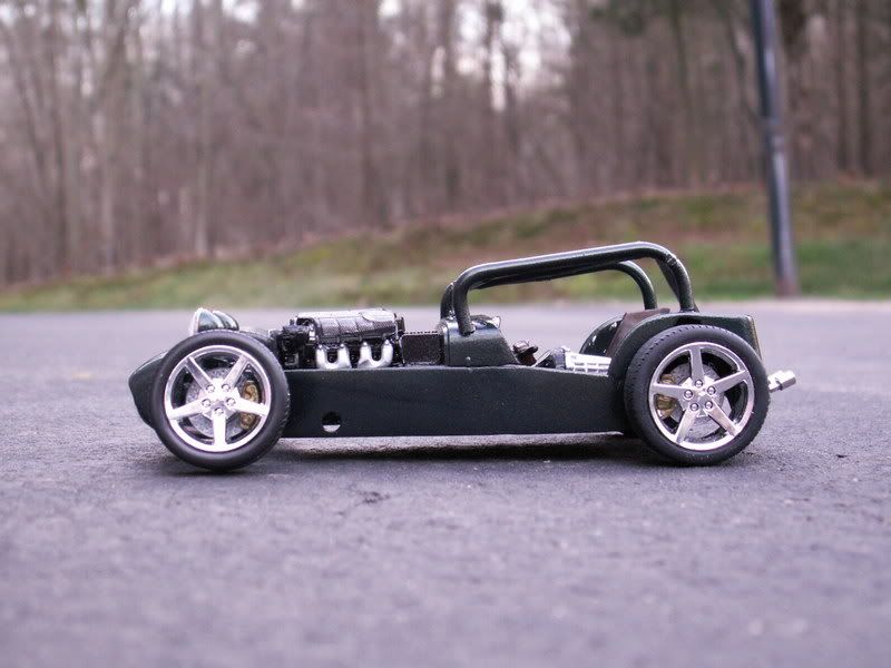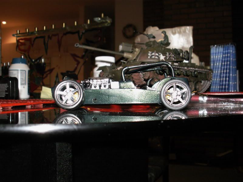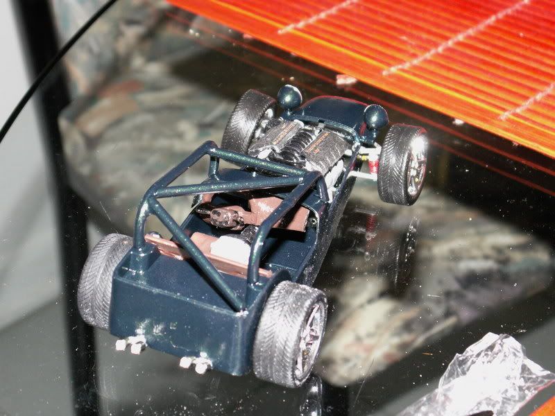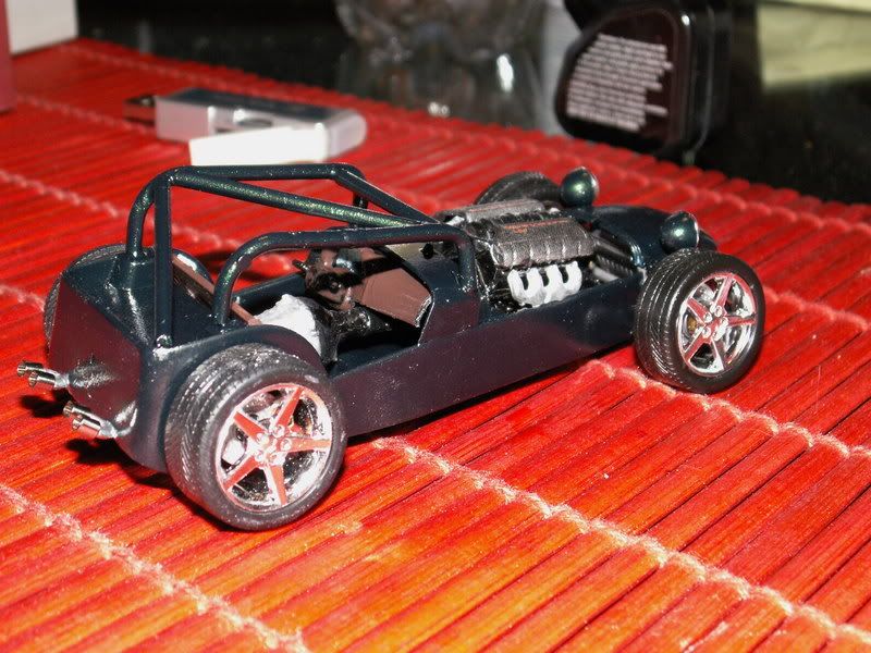 Can't say i like it. it looks to me you tryed something WAY over youre skill level, or you had to finish as fast as possible. The idee is nice, and I can understand things like the paint crazing. It's a long and hard progress to learn how to lay a good paintjob down. But little thing like no steering wheel? You used carbon fibre on the engine, did a rather nice job with the entire engine, and then you dind't bother to align the wheels correctly. The rollbar looks just like some clipped of spreu.. wich it is.