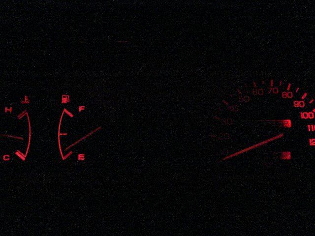 This time I decided to tackle the cluster! I started by removing it from the car and inspecting the twist-n-lock plugs. It became immediately obvious that it would be very difficult to get these to work with a resistor. So instead i decided to try painting the bulbs, I used ed acrylic model paint, applied liberally. And well, here are the results! I think it looks very nice, the color came out just right..the only problem is that my left speedo lights dont work now, but I just havent taken the time to mess with the bulbs, either I broke em or the contacts got paint on em. Anyway, here they are. The resizing of the pics made em a little grainy but still clear enough. Here you can see that the two left bulbs on the speedo arent lighting. ![]() I will be getting a cluster with a tach very soon, I just cant seem to find one locally thats not auto.. ![]() 7 color guages, within a day after I installed them the top two began to only change to red green and yellow..im too lazy to send em back for exchange so it looks like they will stay red. I got them so incredibly cheap though, so I dont mind. ![]() Before ![]() After