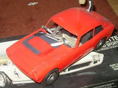 It has been build very bad and sprayed even worse. Here some pics how it was. ![]() ![]() ![]() I started with taking the model apart as far as i could. ![]() After it was apart i gave the upper bodyparts a bath in ovencleaner to remove the old paint and sanded it light. ![]() ![]() On the frontfenders is added some putty and the same has to be done on the rear. ![]() ![]() When it's finished it shoul almost look like this one. ![]() The problem is, i can't find any good picture of the seats and doorpanels. I have some ideas, but it has to be correct ( 'cause it's not mine ). denman