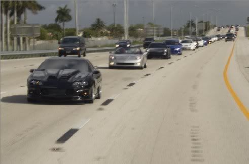 Well that day the event organizers came up to our group and invited us for a very special session the following day. They asked if we wanted to come back the following day and do some laps behind a pace truck on the speedway's oval. out of 72 cars that day 56 came back the following to run the oval. Three laps in our own cars at 120 mph. the speed may be dull but on the turns at that incline it feels like your falling for 20 or so seconds. IT WAS INSANE! anyway the SSP fotographer just send me some pics check it out. This is my fav. pic. In the lead is the clubs prez. Ruben and behind him all 52 cars in single file, you can see the line goes up the highway and vanishes over the crest. ![]() In the entrance to the oval just before the PIT are. ![]() ![]() ![]() runing laps round the track. ![]() ![]() ![]() ![]()