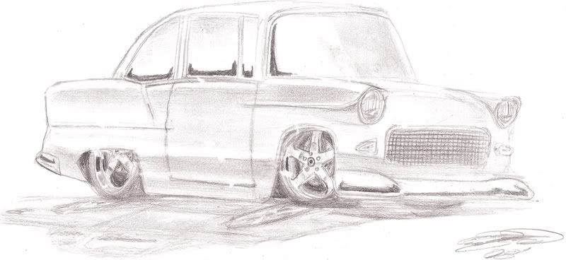 Pencil Drawing of lowered 55 Chevy. Still Practicing and I think I am getting better with my proportions...