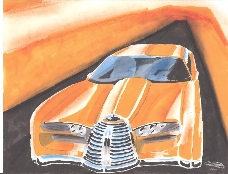 I found that my biggest challenge was rims. I practiced them before I did my proportions. Looks like your rims and tires are pretty detailed. The only thing I see with the proportion is the discrepency between the roofline and the hoodline. Your right headlight should be up a little higher than the left. Other than that, this is a perfect sketch to me. I often can see what is wrong, but I can't fix my own! Do you have that same problem. Like, if you took a look at my drawings, you'd probably say "What is this guy talking about drawing to me for?" Anyway, keep it up. I'm an amateur and need lots of practice, so I look foward to seeing your improvements! I love this sketch though. The rims are awesome, and I just now noticed the reflections on the ground. That would be hard for me to do. Good job.
