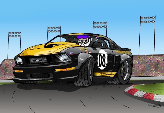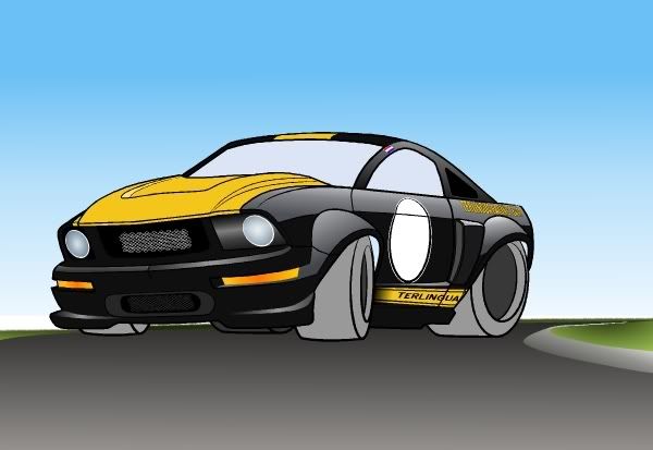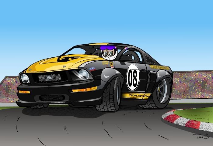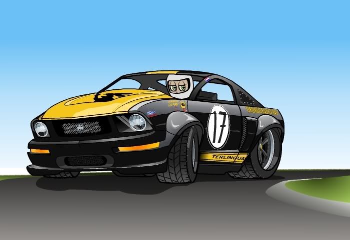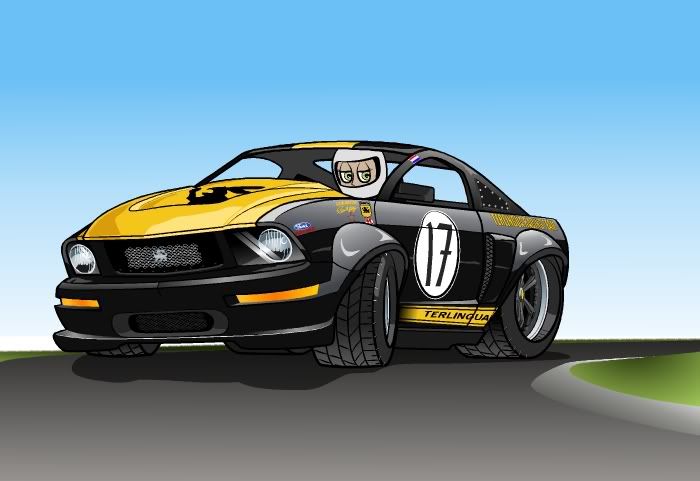 Shelby Terlingua Mustang out on the track. He also asked to make it look like his wife is behind the wheel. I think he's having this one built for her as he already has a new GT 500. Early work from several months ago, before I change my style with the making of the 33 Hot Rod... ![]() Had a very long lead time on this as the client pushed back the delivery date. Redrew much of the image and changed how I did some of the detailing. Still have more to finish, but getting close. This is a big design for me, 16" x 24" so the details aren't reducing down that clear for this post--guess I should lower the dpi for the web.