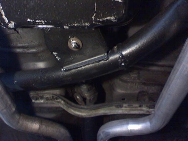 Also if you're running duals I'd recommend doing some work to the crossmember. I had the exhaust shop weld together (extra $100 on top of exhaust charges) both right sides of a 700r4 crossmember and a 200r4 crossmember (I've got a 700r4). You can see the weld in this pic. That makes for dual humps for a cleaner pipe install. ![]()