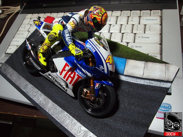 I have broken both visors from my kit, but thanks to one of my friends who has given me one of his as replacement so I am nowing having a proper helmet made. You may seen from the pic, that when the viosr is assembled, the face can bearly be seen nomatter how well it is painted....>.< Anyway, I love and have enjoyed the painting of my favorite rider of all time! ![]() Decals are put on on the helmet and the Cartograf decals are exceptionally great! Thin but strong and the sharps are all perfectly fitting! ![]() The body of the figure is a nightmire! After a few days of sanding and scripting, I have finally managed to get it fixed and painted. ![]() Decals are then put on and The figure is now more Rossi then before! ![]() I have laid a layer of Testor dull coat to give a matt surface before I have some final touches with arcrylic paints. |