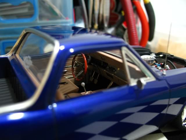Looks great! I love the engine, super well detailed and cleanly built. The paint is astonishing, too, beautiful. And you got the stance just right, which is so, so hard when putting an old muscle car on modern rims. GREAT!!