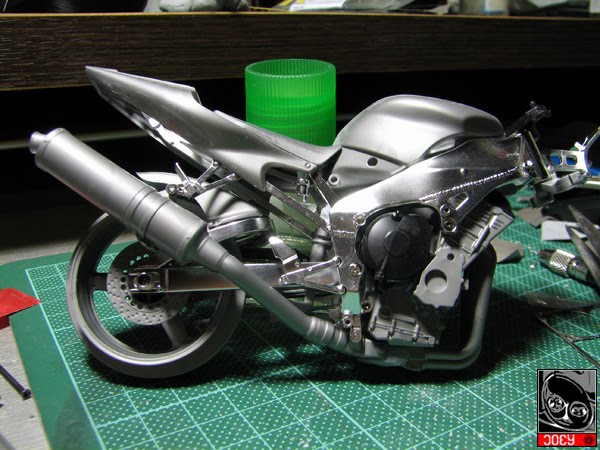 Then I have prepared the chassis and machines painted. Simple enough that I have just spent a day to work on them. Anyway, I hope I will have the energy to polish the cowling in the cokming weekend than I will have this R1 done and move on with the M1 again. ![]()