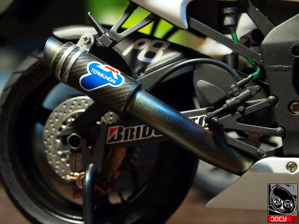 ![]() ![]() Like the previous 2004 M1 a couple of years before, I have decided to give this ride a workable chain. Again, the TS chain set is employed here. ![]() I know this chain sets have already been widely used. Anyway, just a couple of ideas of mind that I think will be useful for new-hands to get it started. One of my ideas is to make use of a couple of very small document clips to hold the stand. With the clips in use, I will be able to skip using any glue in the whole process. Also, with a couple of hammering, the PEs start to bend, and the clips help to hold the PE tight, making sure the little tiny pieces don't fall off thougth the bending gaps. ![]() ![]() Another idea that I think woudl help, is to... not to lock the screws at every single step with the nuts, in order to avoid movements that give chances to let the tiny pieces go out of place. With the help of clips and the fact that the PE stacking will hold the screws tight enough. ![]() ![]() At roughly 150mm, the chain is not done and this time at a quite satisfactory length. ![]() As the most troublesome item is now done, I can move on to other parts of the ride. And hopefully After the next round of fitting, some paint work can be started. Talking about paint work, I am a bit serious about the blue with the Fiat livery. In the light of this, I have started a R1 simply for color test. ![]() A very very quick pre-assembly was done in just one night. However, as I realise there are plenty of parts left behind from the M1 kits, I think I am able to put some of them onto this R1 to make it a little customised. A striaght forward idea is to implant the exhaust. The original one works like this. ![]() And after some fitting, the M1 exhaust has been fitted. ![]() These are how it goes so far, the cowlings has already been primed and paint work will be done soon.