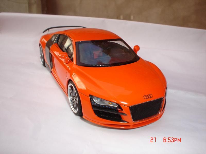 thanks a lot for your visits to my wip ,well finally this one is done, lots of trouble installing the windshield,and side windows,the engine cover didn't fit as expected, the rear wing supports were made of aluminum rod, they were bent a little, the Audi emblems came from the HobbyDesing stuff,well let the pic do the talking , i had a good time bulding this kit , it isn't perfect but anyways, comments are welcome as well criticism thanks.