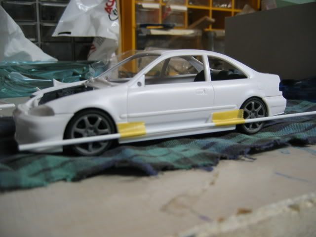 Actually, I've been thinking about de-riceing this kit for quite a while. What I was thinking of doing was making a copy of the Hasegawa front bumper, and using the Revell Si rear bumper that I didn't use on the back. It fits almost perfectly and looks fairly similar. then the only major work would be removing those ugly side skirts and replicating the stock rockers. Keep us posted on what you end up doing.