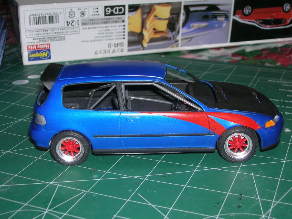 ![]() ![]() ![]() Hasegawa Civic Sir II Tamiya Mica Blue, bright red Scratch rear spoiler double vented hood watanabe wheels converted to male fitment hubs shaved to get wheels to fit under fender reservoirs on rear shocks roll cage taken from a racing civic..tried making my own and it came out like crap...have another racing civic kit to make a better try scratchbuilt gas tank ![]() ![]() Last edited by jamaicawagon; 01-12-2012 at 10:26 PM. |