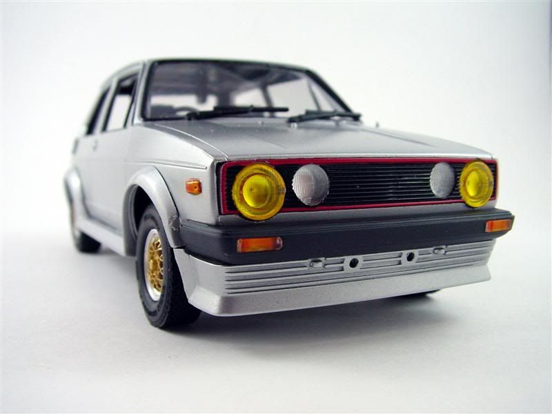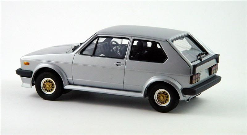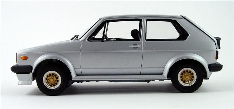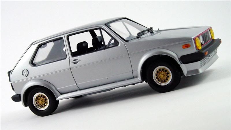 Here is my take on the iconic MkI Golf GTI. Kit is a very basic one from Fujimi, which was clearly originally motorised. I was going to build a "my first rally car", but after seeing a 1:1 during an image search that was in this scheme I decided to change. Paint is Tamiya TS-17 Gloss Aluminium straight from the can, gold centres on kit-supplied wheels, otherwise out of the box. In hindsight I would have glued the rear tailgate shut. Used Tamiya's Rubber Black on the bumpers, and I think they came out well. All you Dubbers out there - be kind! ![]() Cheers, Grant. ![]() ![]() ![]() ![]() ![]()