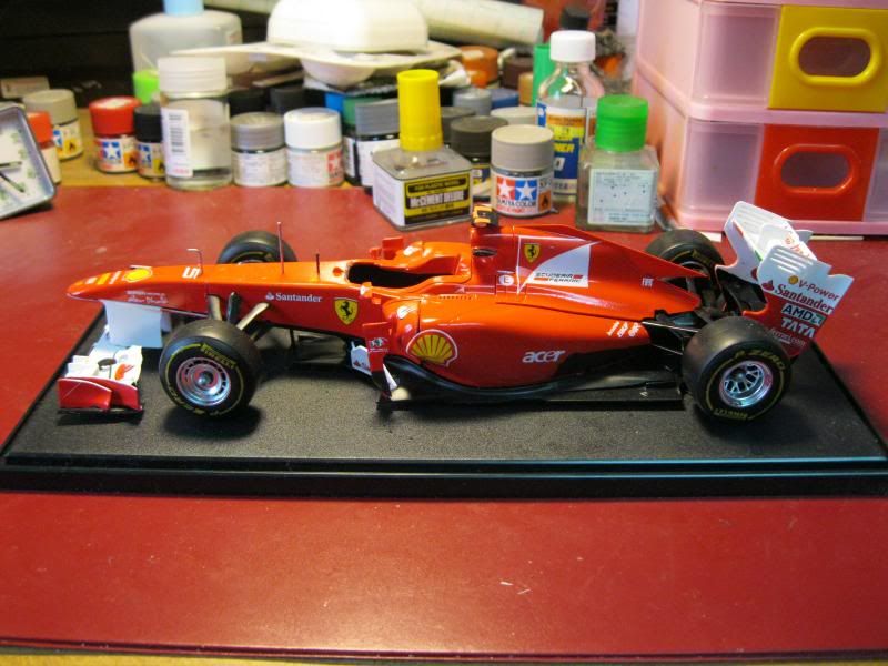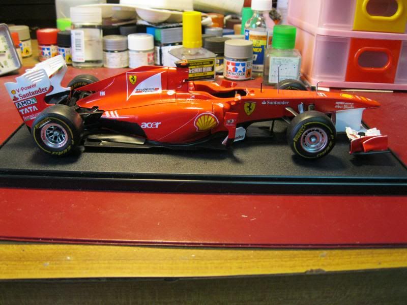 I saw your work on MP4/27 & F10 in the website & your blog. I was thinking of making either one of them but I couldn't decide what to take. In your opinion, which kit is easier to make? MP4/27 or F10? I thought of wanting to do something different after making lots of Ferraris, thus the idea of making MP4/27 came into my mind. Do you think TS-83 (metallic silver) would be a good colour scheme for the MP4/27? Which red do you use to make Ferrari F1s? Cause I use TS-49 (bright red) after priming the surface. I did consider using TS-85 (bright mica red) when I tried to make F150, F2007 or F2012. The only gripe I had for F2007 was there was no instruction to saw off the edge of the bolt. Thus, I had difficulty placing the tyres & as a result that I had difficulty putting in the tyres, the marking on the tyres were ruined. I need some more practice on making the rear wing along with the nose cowl. Even my F2012 also has the opening at the engine cover where the side exhausts are supposed to be covered. You can have a look at my WIP : http://www.automotiveforums.com/vbul....php?t=1085791 Adrian |