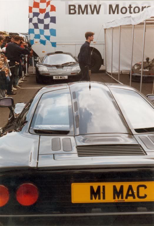 ![]() The fact that this F1 was used by Jeremy Clarkson in one video and that it was seen in some of McLaren's promotional displays makes me think there was some tie in with the factory for this car. The most logical possibility would have been Ron Dennis' chassis #003 given that visually this car seems to match that one quite closely. Most of the confirmed shots of #003 show it wearing the 'K4 MCL' plate however, but even more importantly, and what I believe clearly excludes #003 is that this F1 wears the later style side mirrors from the sourced from VW. Chassis #011 and #024 were both painted "Carbon" originally so I guess it is safe to assume it would have to be one of them. The earliest images of #011 show a red stripe on the ventline of the door and a plate that read 'M351 HPM' so possibly that should be excluded as well. Beyond those comments I don't have any solid details to go on. I guess I am hoping an insider will see this and have some recollection. Otherwise, we'll just enjoy the picture I guess. ![]() >8^) ER Last edited by Peloton25; 06-06-2008 at 04:07 AM. |